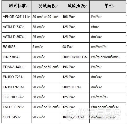 目前常用于透氣性測試的標(biāo)準(zhǔn)有: