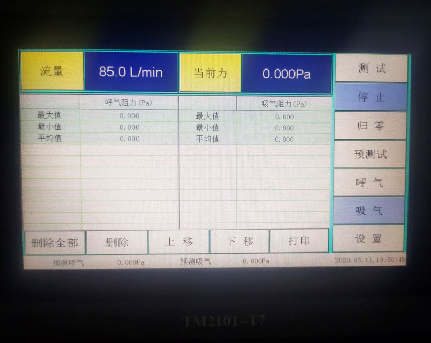 3. 將機臺壓力值清零空運行呼氣測一次,吸氣測一次.