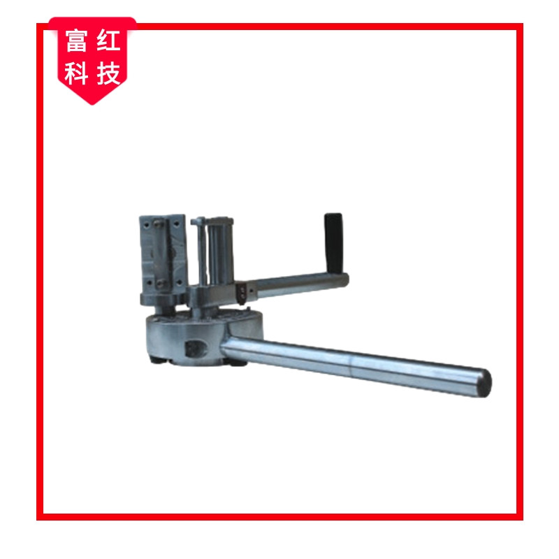 用于測(cè)試鋼勾心的抗彎曲性能,將勾心插入夾具中使其繞直徑為∮10mm的中心立柱旋轉(zhuǎn)180°,目測(cè)表面小裂紋狀況即是否斷裂,判定其質(zhì)量。